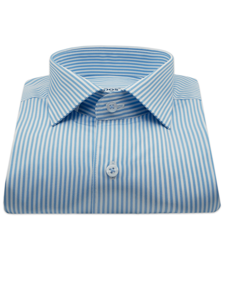 • Blue pinstriped fitted dress-shirt for men• Cutaway collar• Single cuffs• Double Twisted cotton• Formal dress code
