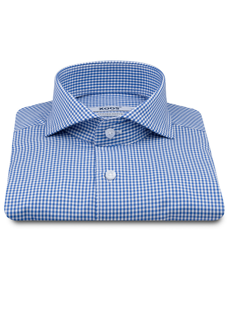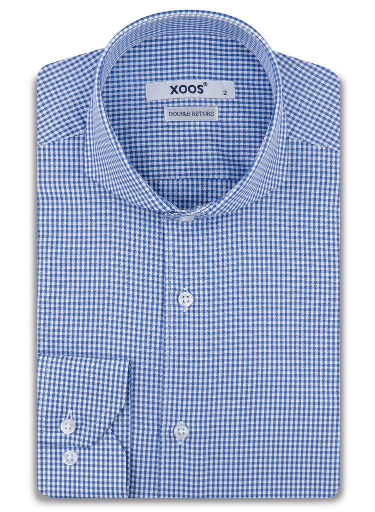 • Blue checkered fitted dress shirt for men• Cutaway collar• Single cuffs• 100% Double Twisted cotton • Business casual dress code