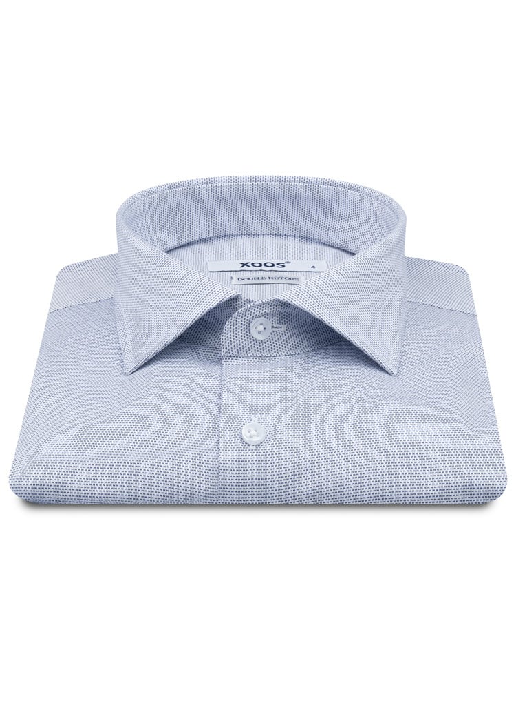 XOOS Men's blue fiancial shirt with full spread collar (Double Twisted)