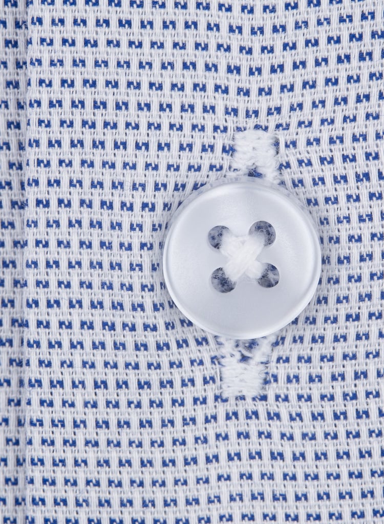 XOOS Men’s white shirt with blue floral lining and matching colored buttons