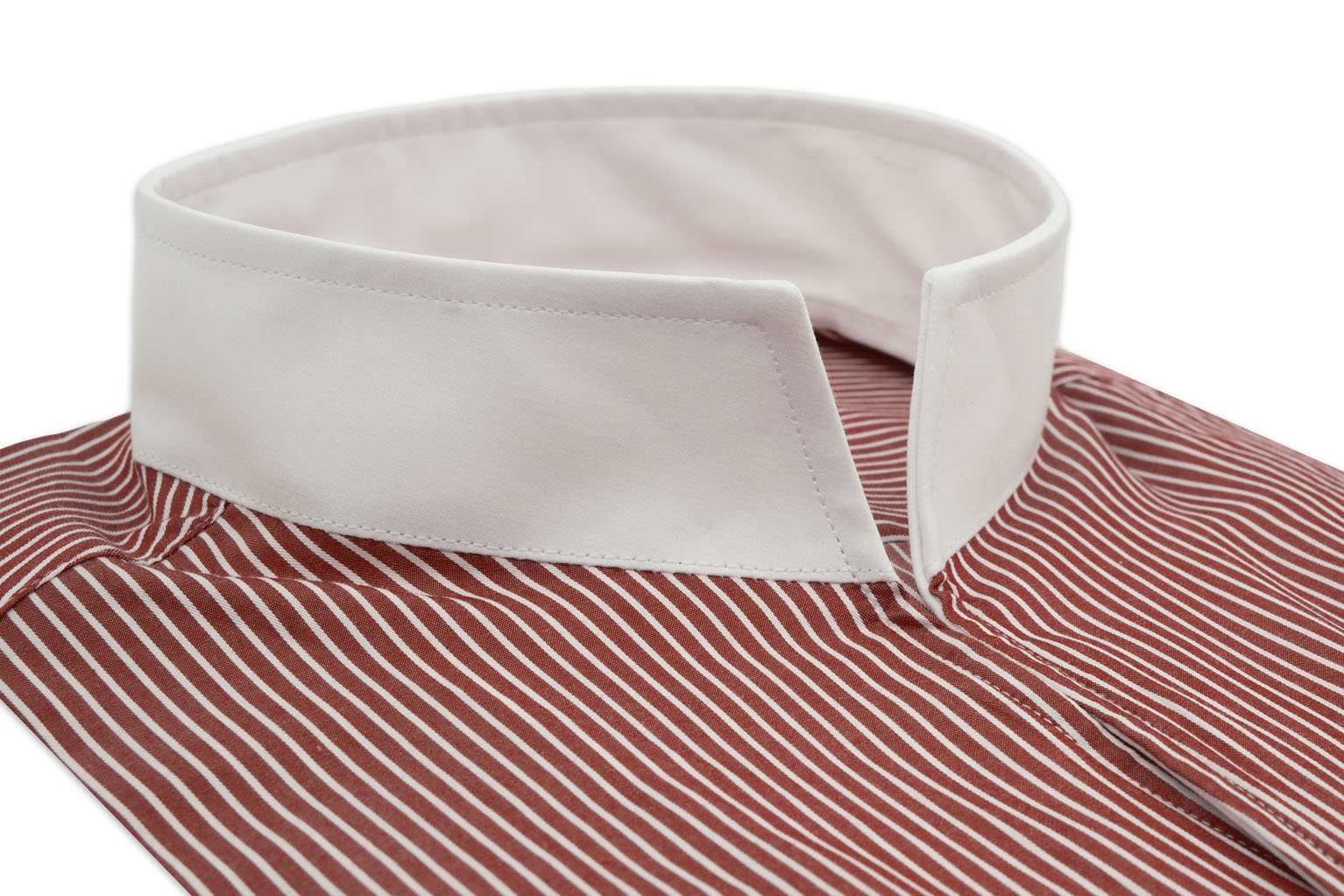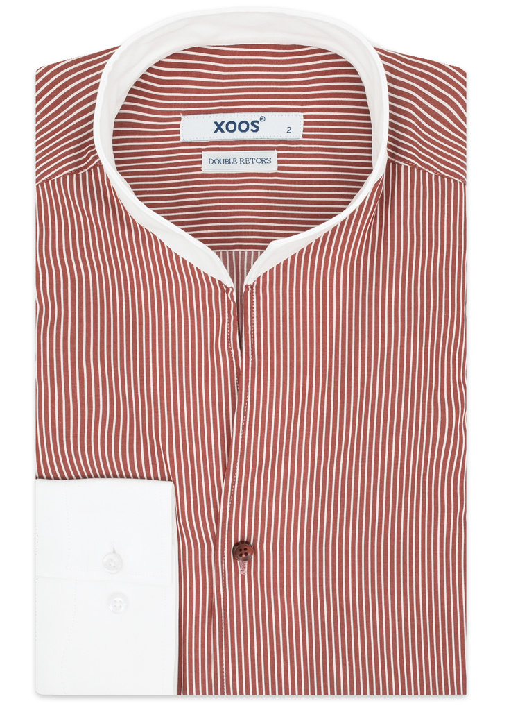 Men's burgundy striped dress shirt with straight open collar (Double twisted)