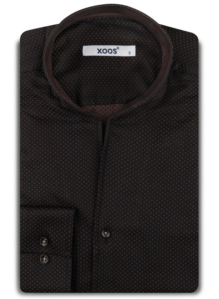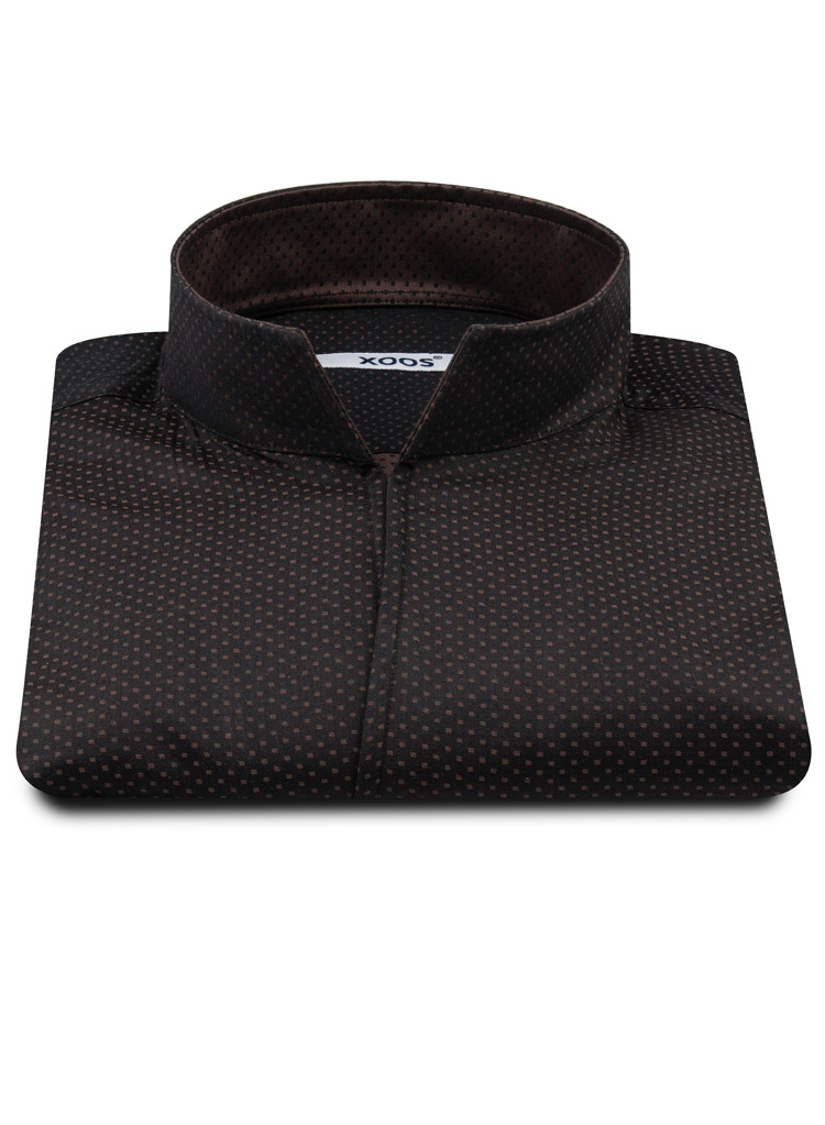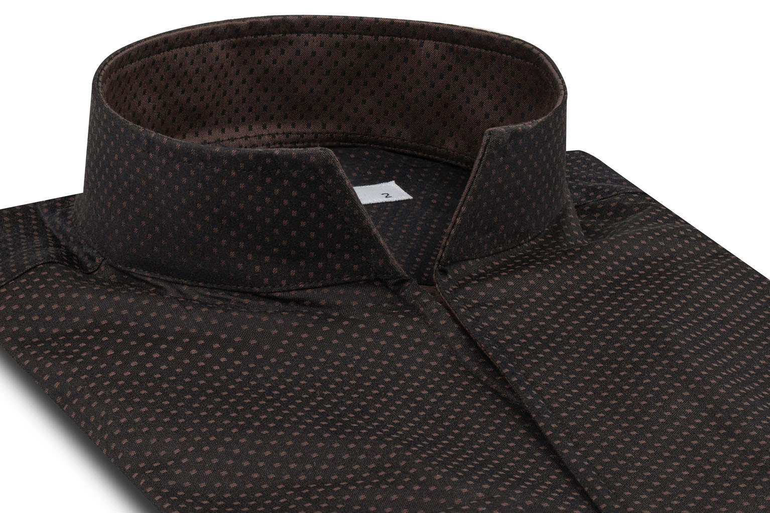 Men's chocolate micro-dot shirt with Straight Open Collar