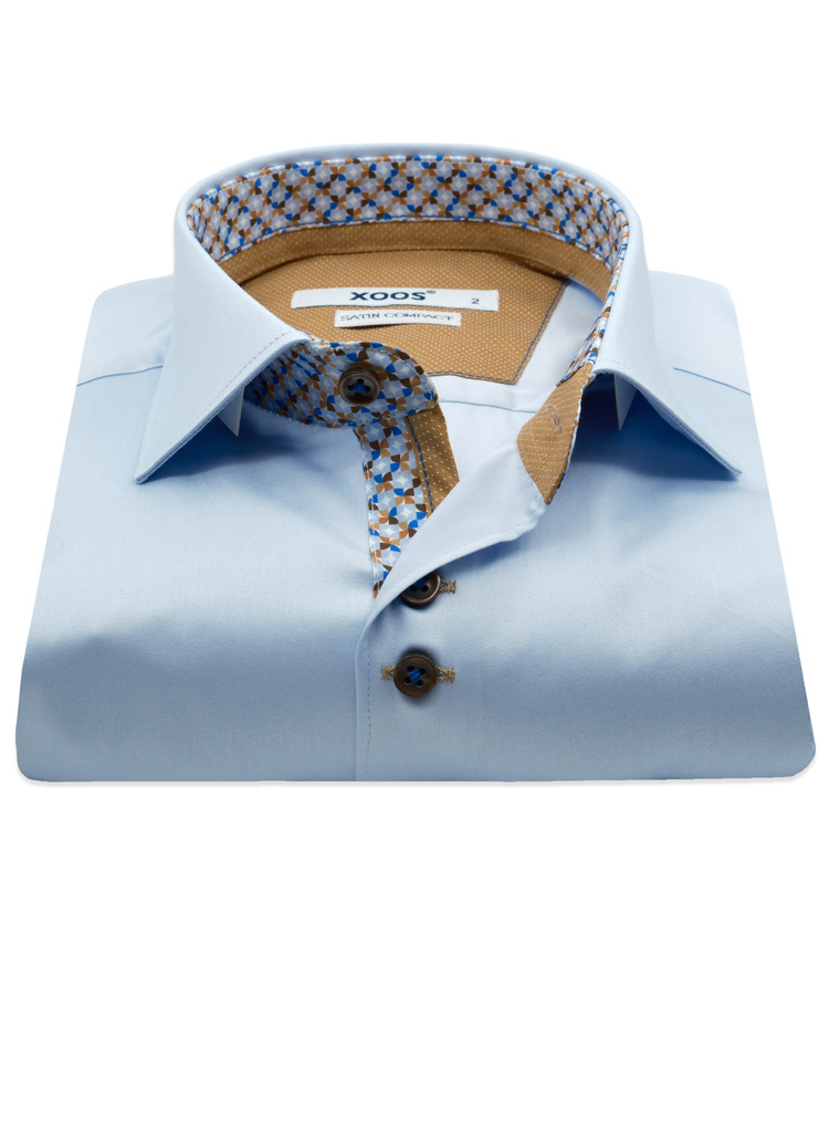 XOOS Men’s white shirt with double chest buttons, blue lining and print