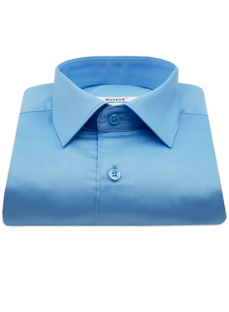 • Formal light blue dress shirt. • Fitted cut• Cutaway collar• Single cuffs• Sateen cotton• Essential piece of men's wardrobe• Formal dress code.