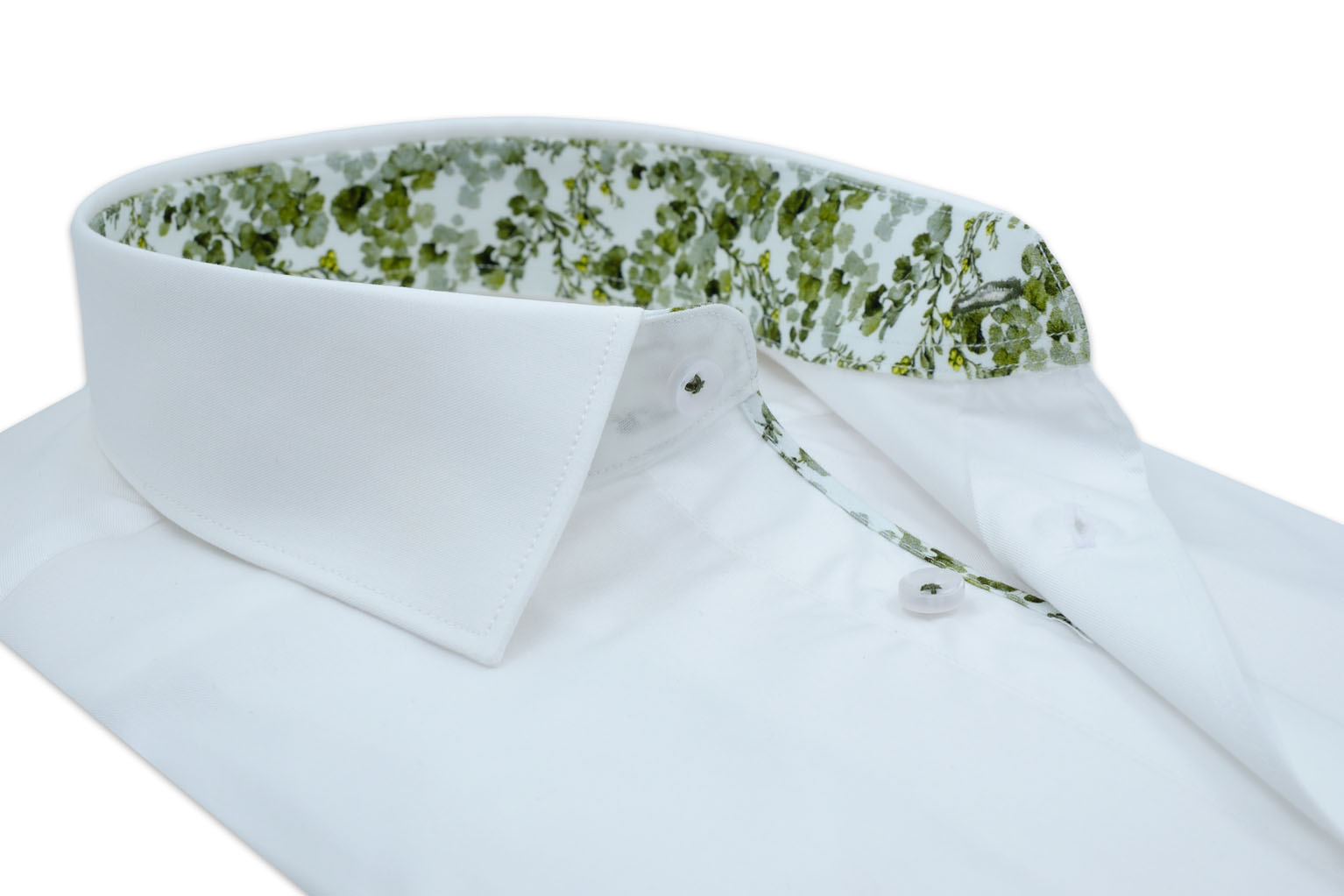 Men's white dress shirt and green floral printed lining (Double Twisted)