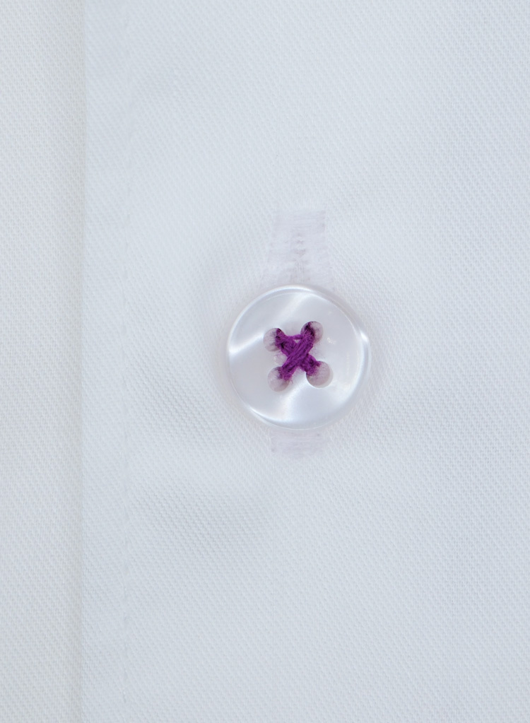 • White dress shirt. • Fitted cut• Cutaway collar• Single cuffs• Printed floral lining• Matching buttons threads• Double Twisted cotton• Business casual dress code.