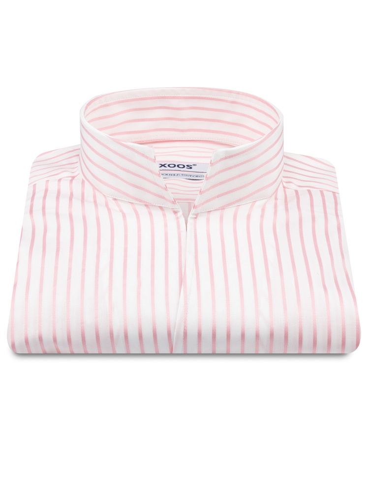 Men's white shirt with pink stripes and Straight Open Collar (Double Twisted)