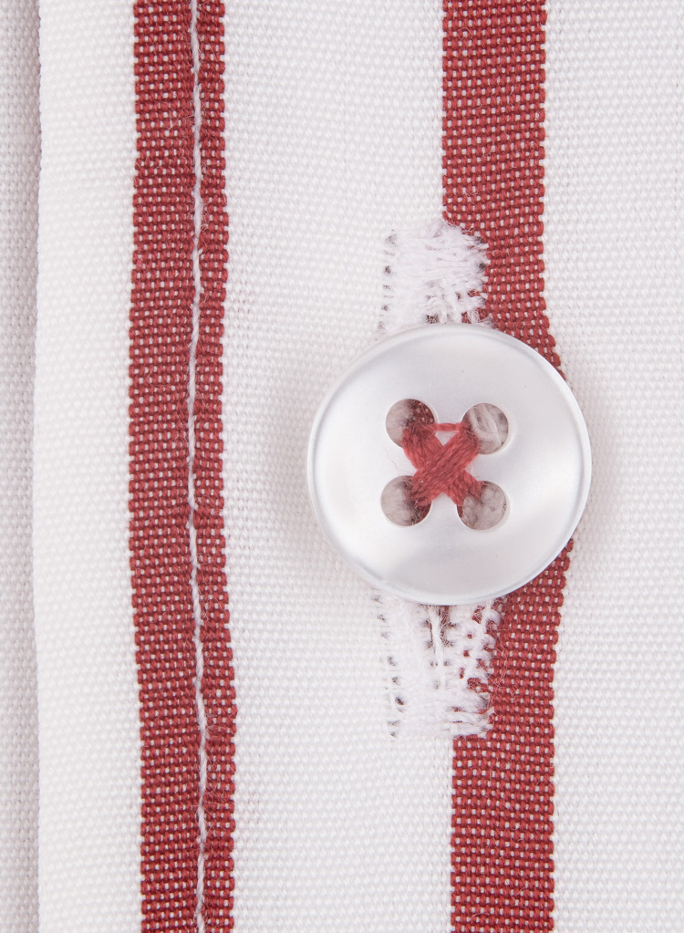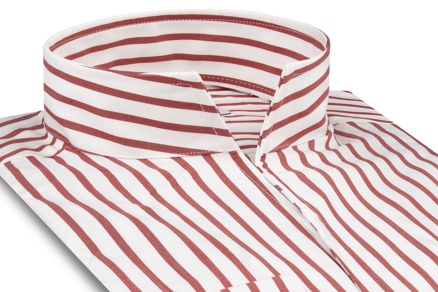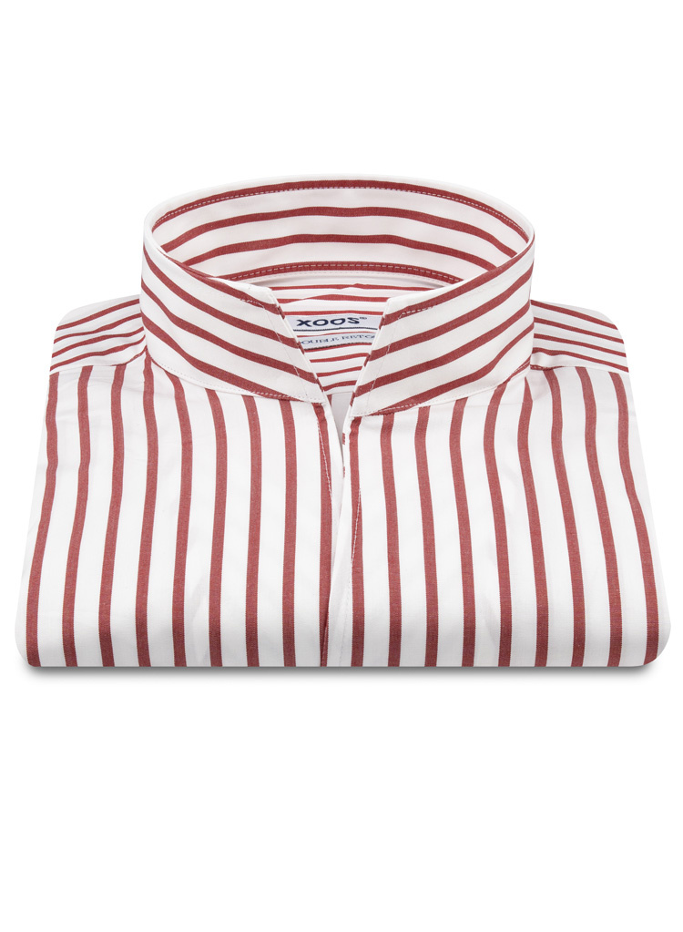 • White red striped dress shirt. • Fitted cut• Staight V shape Open collar• Single cuffs• Double twisted cotton• Casual dress code.