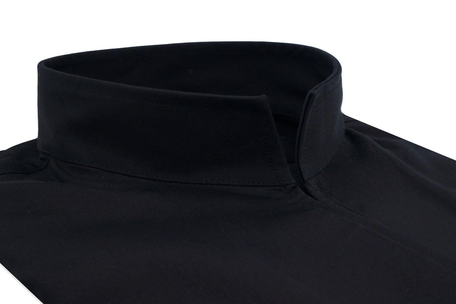 Women’s black twill blouse with straight open collar