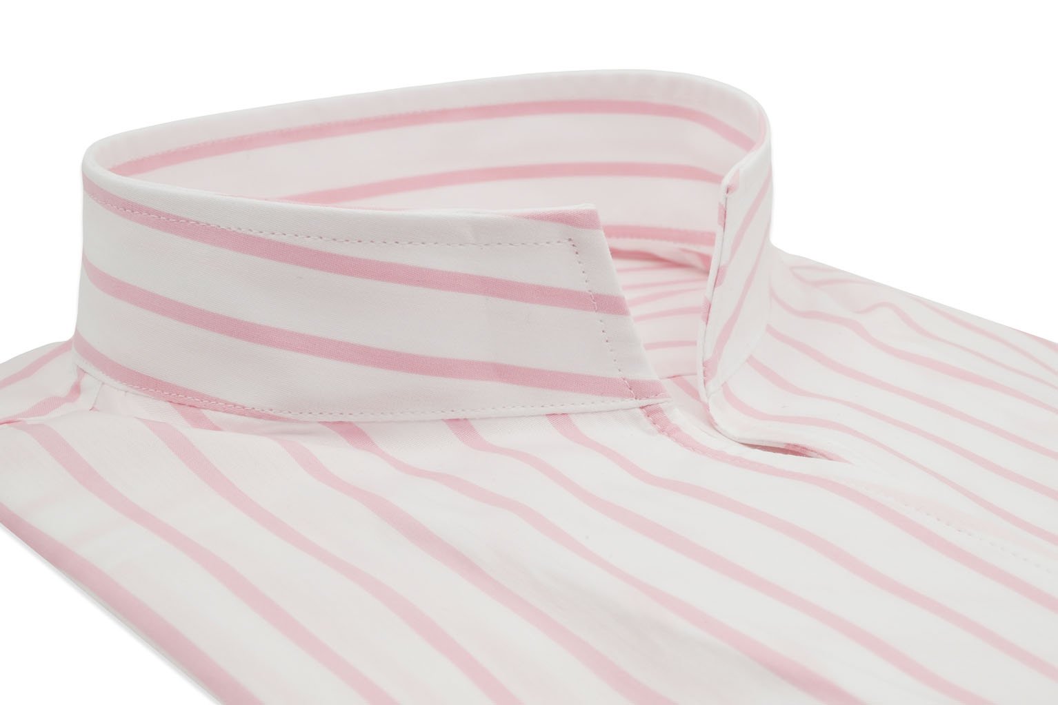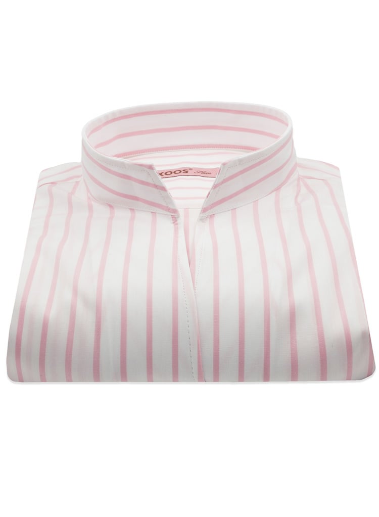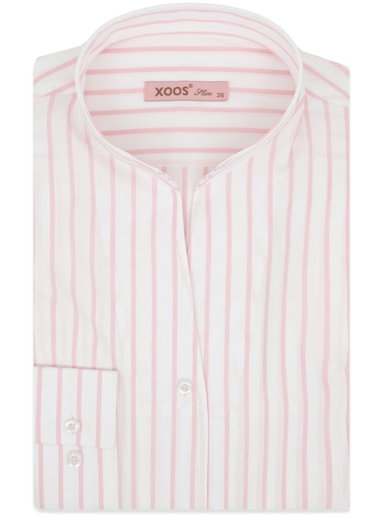 • Pink striped dress shirt for women • Fitted cut • Staight V shape Open collar • Single cuffs • 100% cotton • Timeless shirt of a women wardrobe • Corporate dress code