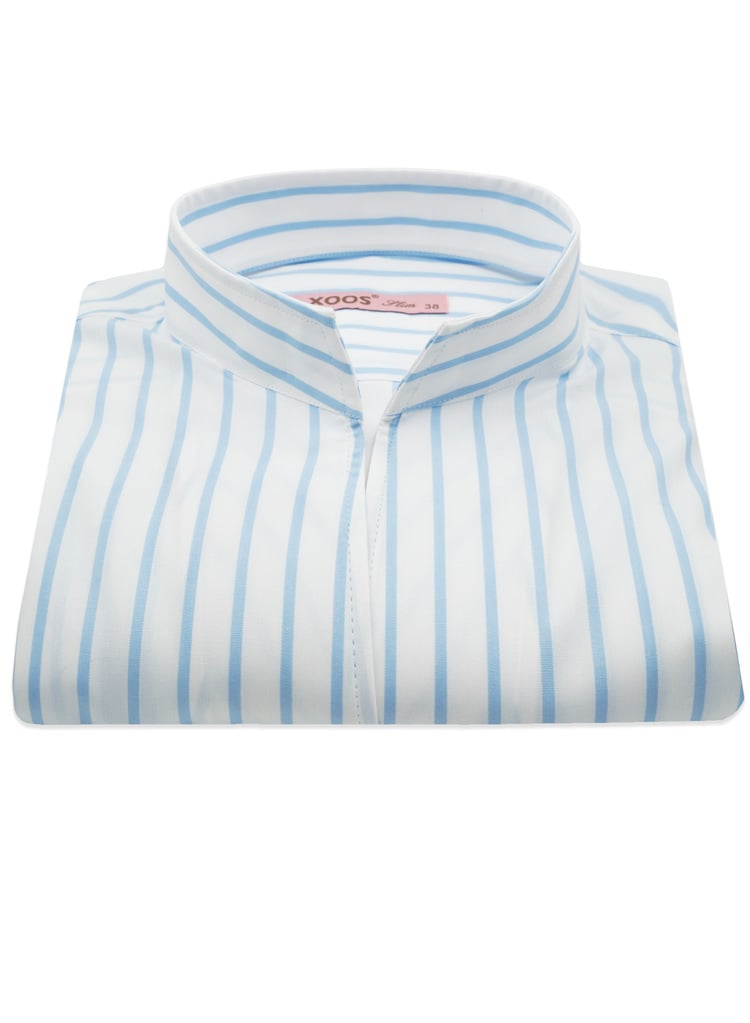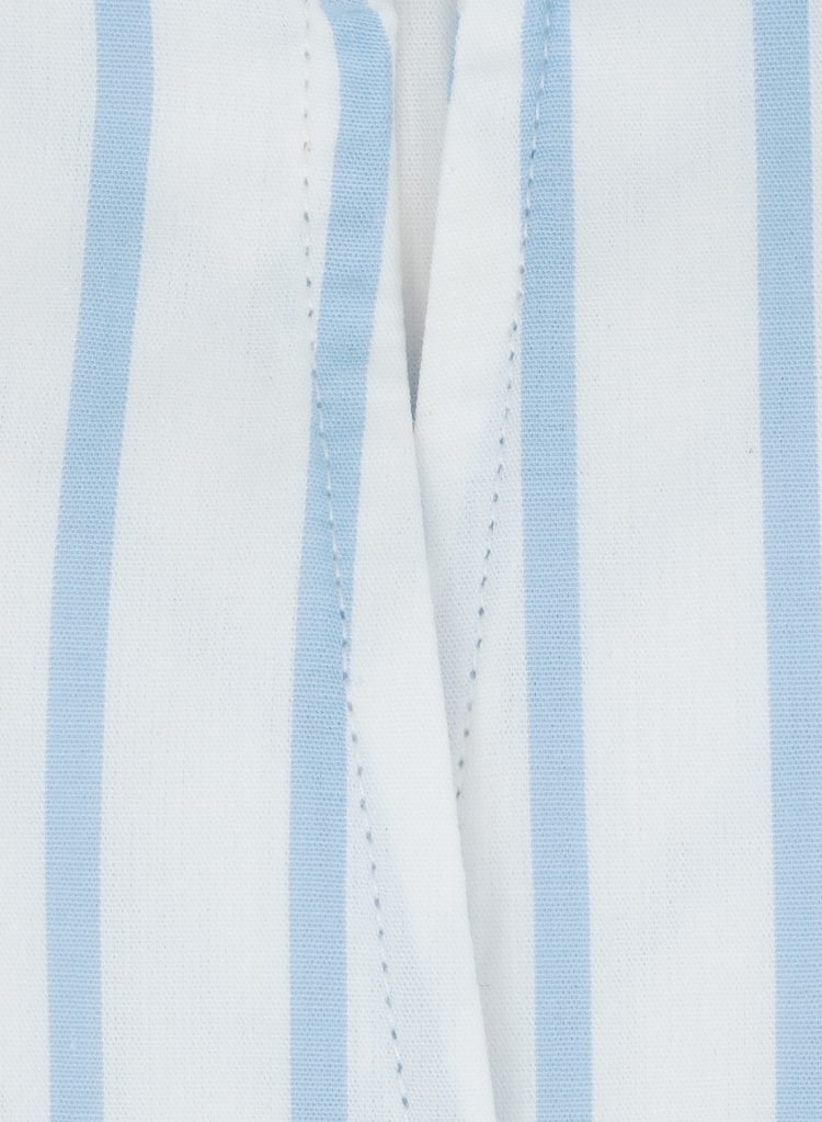 Women’s white blouse with sky blue stripes and straight open collar