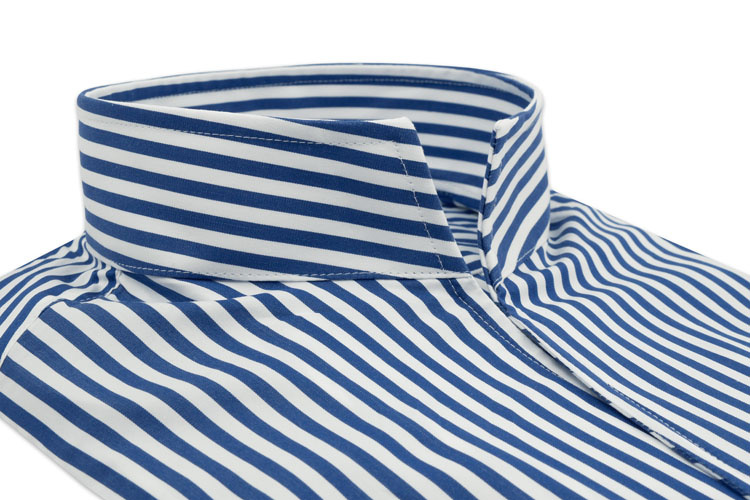 Chemise homme à rayures marine et à col droit ouvert (Double Retors)