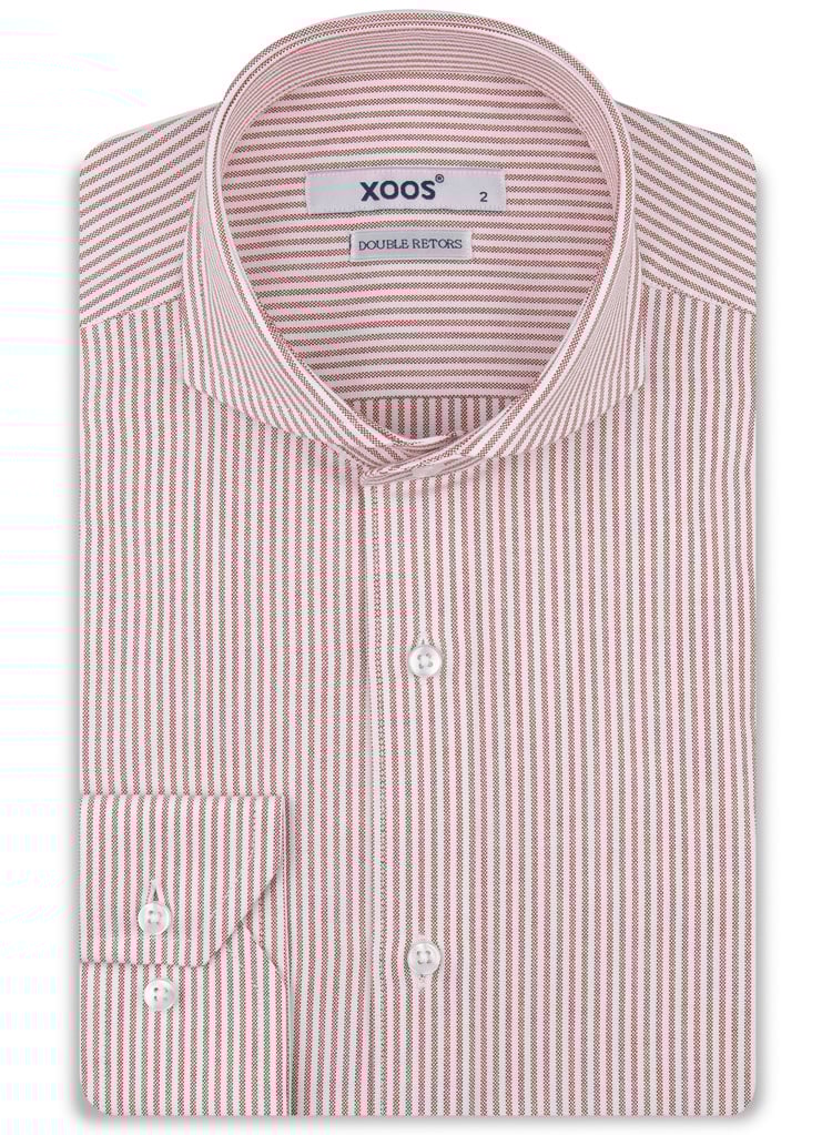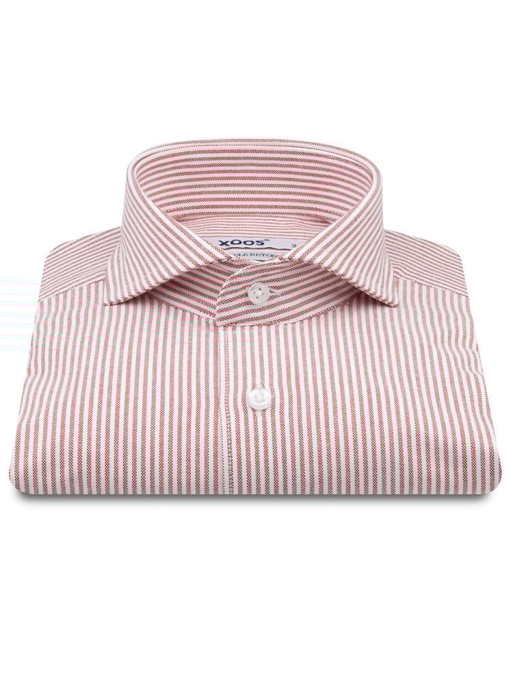 XOOS Chemise homme blanche à rayures rouges et col droit Ouvert (Double Retors)