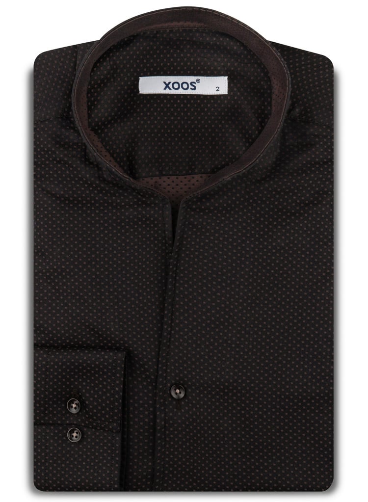 Chemise homme chocolat à micro pois et col droit ouvert