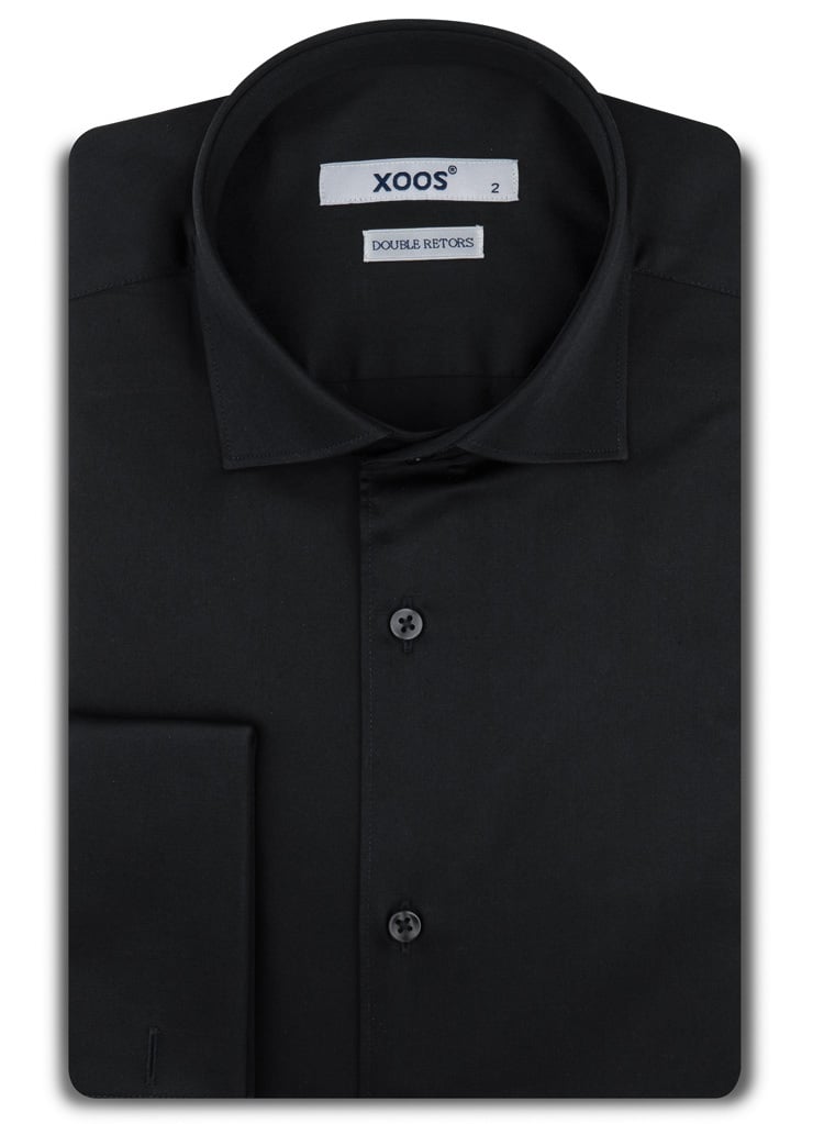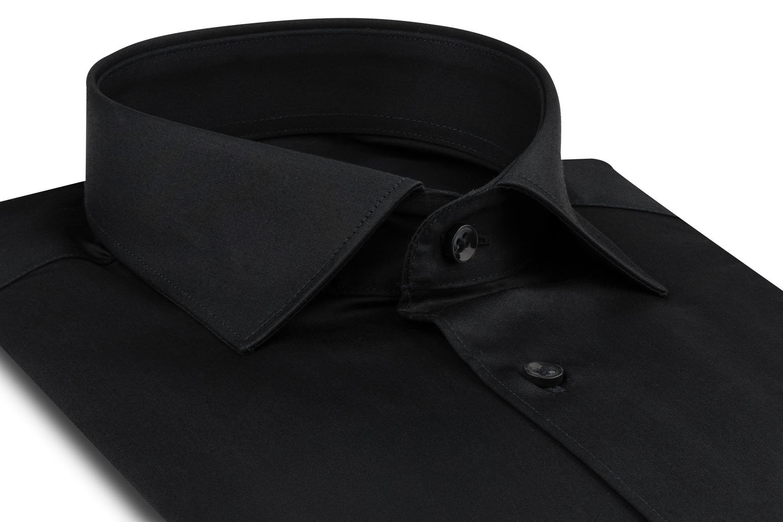 Chemise homme en Twill noir et poignets mousquetaire (Double Retors)