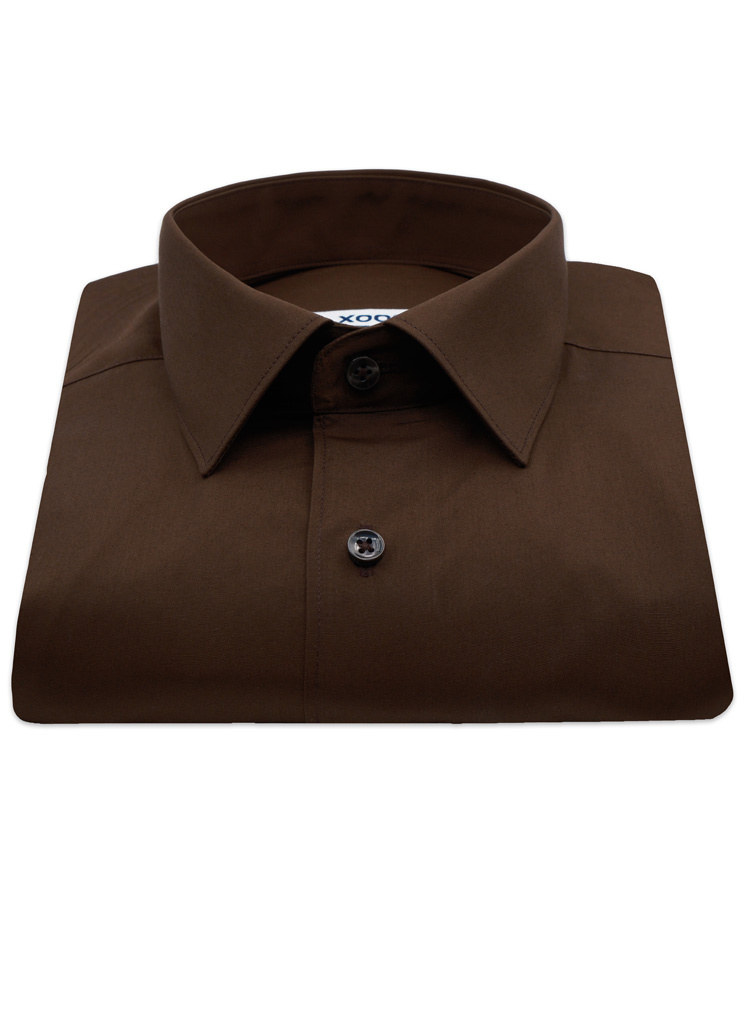 • Chemise homme marron chocolat uni• Col Français• Poignets simples• Pur popeline de coton Double Retors• Look corporate