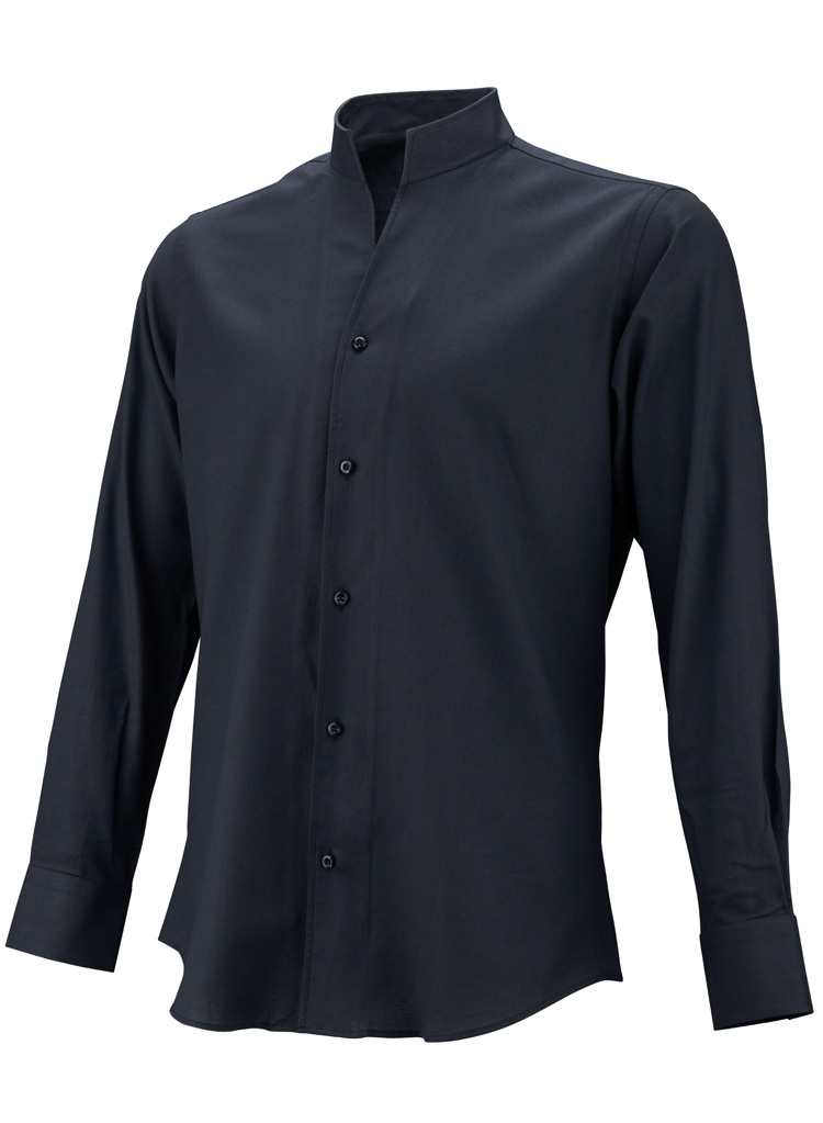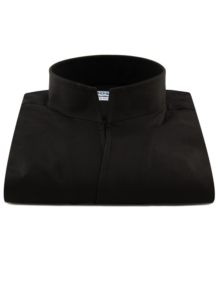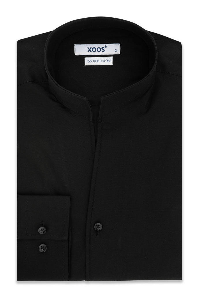 Chemise homme noire à col droit ouvert (Double Retors)
