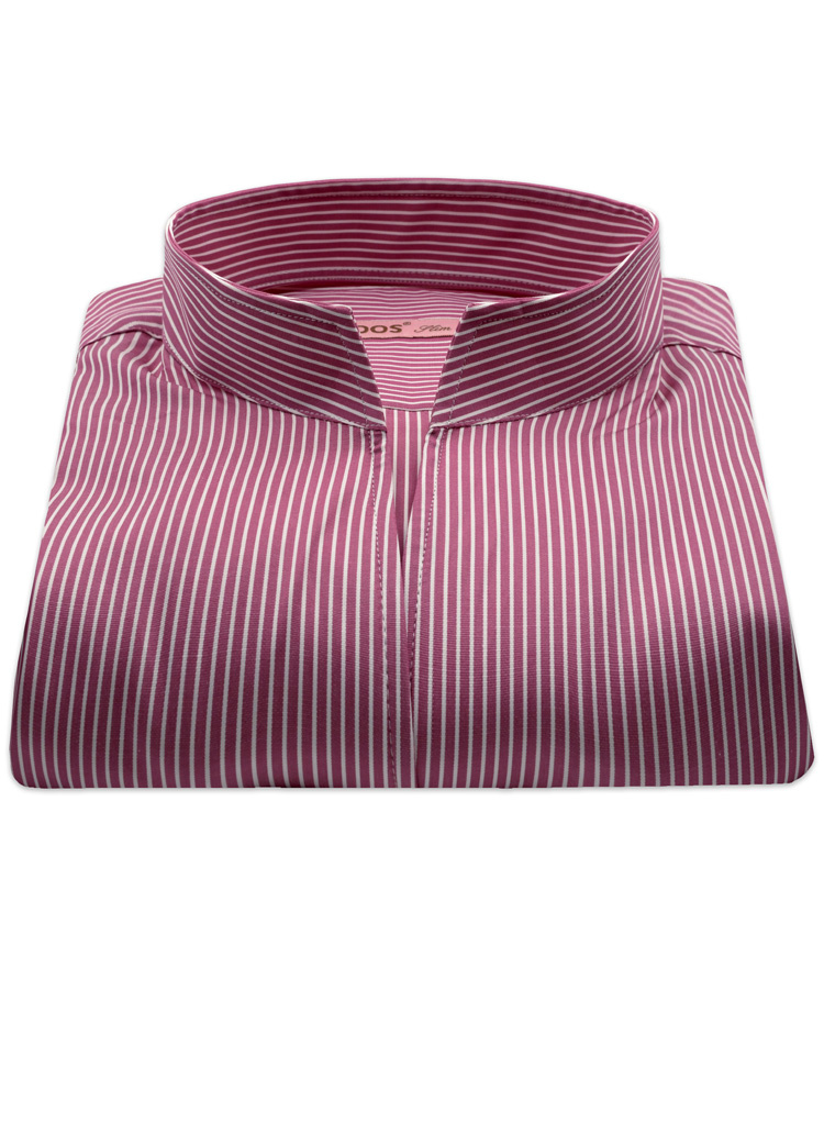 Chemisier femme rouge vin à rayures et à col droit ouvert